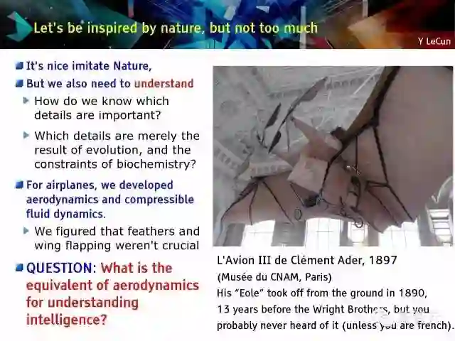 LeCun 指出,让我们从自然里汲取灵感,但不需要依葫芦画瓢