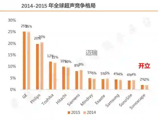 国内拥有一定实力的,仅有两家:迈瑞、开立。