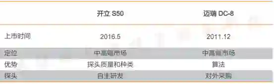 (开立的中高端设备S50,和国内竞争对手迈瑞的同级产品DC-8比较,可以看出探头是开立最拿得出手的重要组件。)