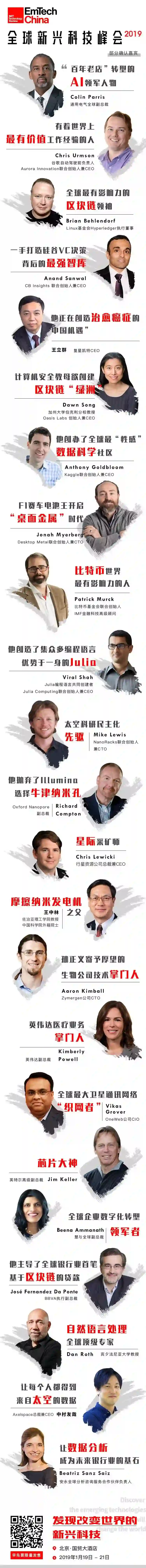 目前,EmTech China 2019 全球新兴科技峰会已进入筹备阶段!本次会议不论从嘉宾量级、会议规模、内容丰富程度上看,都将大幅提升!目前已有 23 位全球科技领袖确认出席,更多重磅嘉宾陆续确认中。已确认的嘉宾有: