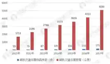 2016年末,中国大陆共计30个城市开通轨道交通运营,运营线路长度达高达4153公里。到2017年12月31日,中国大陆35座城市开通运营轨道交通线路,总里程高达5083.45公里。一年的时间全中国轨道交通线路长度增长了22.4%。(数据来源:前瞻产业研究院)