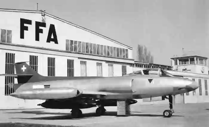 P-16 瑞士喷气式飞机。1953 年到 1955 年间,Z4 为 Flug- und Fahrzeugwerke Altenrhein SG 在康斯坦茨湖上开发的这款飞机执行过颤振和俯冲计算。