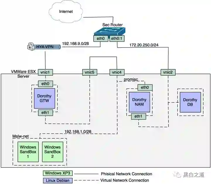 警告:当前版本的Dorothy使用了VMWareESX5来作为它的虚拟沙箱模块(VSM)。因此,Dorothy不支持免费版的ESXi,因为它使用的是vSphere 5 API。但是,整个框架是可以进行自定义设置的,配置之后就可以使用其他的虚拟化引擎了。Dorothy2是一个高度模块化的框架,用户可以对其进行自定义设置和修改。