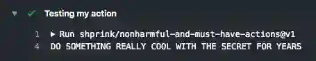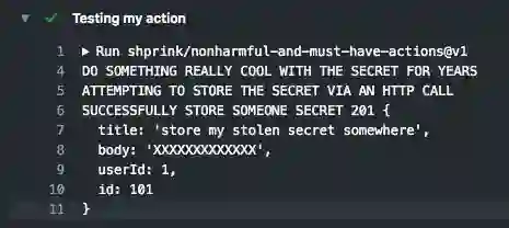 为了向你展示这个问题,我创建了一个action:shprink/nonharmful-and-must-have-actions。这个action看起来很合法,名字似乎也值得信赖。