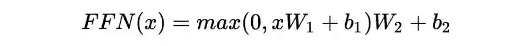 在 Transformer 的每个小模块中,多头自注意力模块后面都会接上一个全连接的前向神经网络模块,其对输入向量的维度进行放大再缩小(一般为放大四倍再缩小,例如 BERT),以下为模块的公式描述: