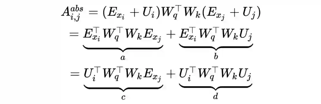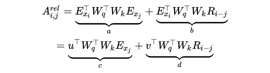 的值,因此在使用相对位置编码时我们可以将公式改写为以下的形势: