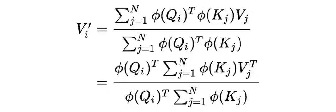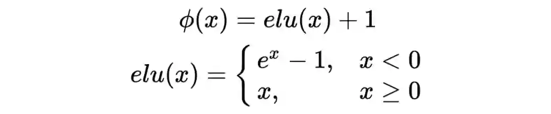 通过一种核函数的方式巧妙地替换了 softmax,其认为只需要找一个恒为正的核函数将 Q 和 K 的值进行映射便可完成以上过程: