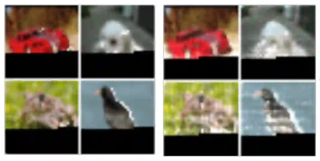 首先作者为引入稀疏注意力机制做了一些实验进行支撑:其构建了一个由原始 Transformer 模块深层全注意力网络,用于图像的像素级自回归生成任务,即把图像的像素点按照从上到下从左到右的方式当成一个序列,然后在序列上去做自回归。其在生成过程中对网络的注意力情况进行了观察,如下图所示,底部的黑色部分表示还没有生成的部分,白色凸显的部分则是注意力权重高的地方。下图是比较低的层次的注意力,可以看到,低层次的时候主要关注的还是局部区域的部分。