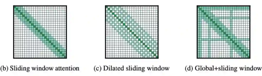 Longformer 设计了三种 Attention 模式,分为 Sliding Window、Dilated Sliding Window 和 Global Attention: