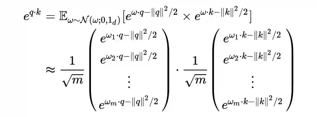 的解决思路其实也和 Linear Transformer 是一致的,其工作的最大亮点在于为 softmax 找到了一个更为优美的映射来替代并给出了理论证明,而不像之前 Linear Transformer 那样仅通过核函数的替换显得有些空穴来潮。其映射表示如下