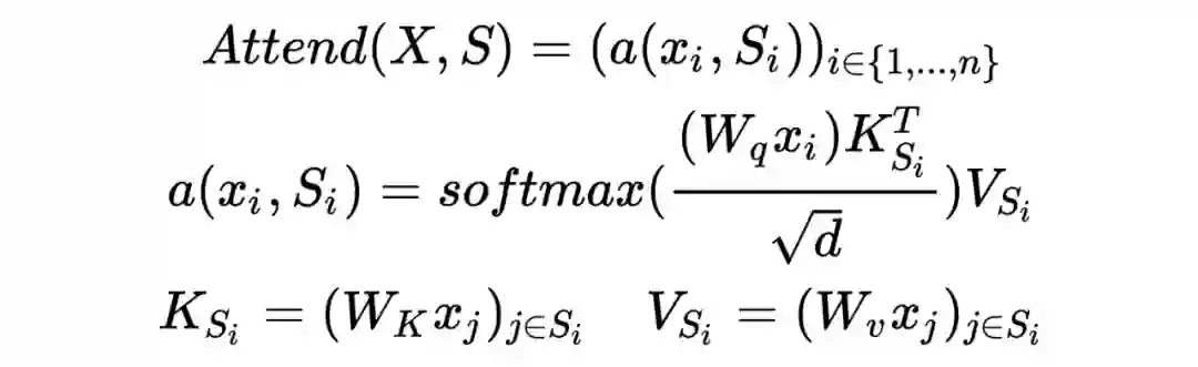这里同原始 Attention 范式的区别主要在于引入了 Attend 项,即当前位置关注的范围,这里