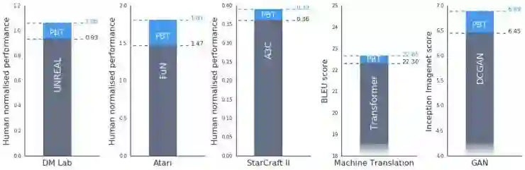 实验表明,PBT在整个任务和领域都非常有效。Deepmind在DeepMind Lab,Atari和StarCraft II上使用最先进的方法严格测试了一套具有挑战性的强化学习问题,在所有情况下,PBT稳定的训练方式均能很快就找到了好的超参数,并得到了超出最新基线的结果。