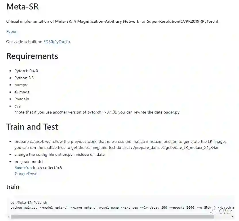 论文代码:https://github.com/XuecaiHu/Meta-SR-Pytorch