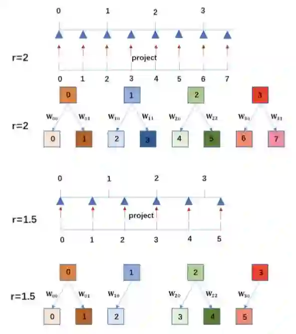 图 2:当非整数缩放因子 r=1.5 时,如何放大特征图的示意图。