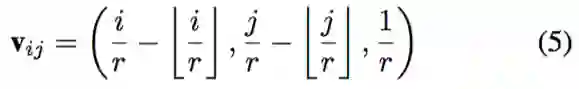 其中 v_ij 是与 i, j 相关联的向量,也是权重预测网络的输入,其可表示为:
