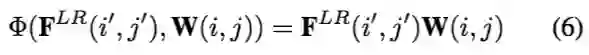 FeatureMapping。Location Projection 和 Weight Prediction 之后要做的就是把特征映射到 SR 图像上的像素值。本文选择矩阵乘积作为特征映射函数,表示如下: