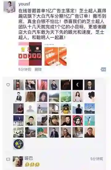 5、趣店旗下大白汽车分期砸一亿成映客芝士超人首位广告主