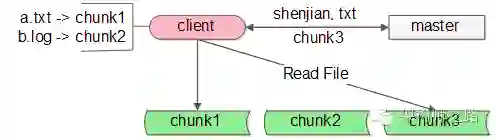 (2)client访问master问说文件在哪里,master告诉client在chunk3上;