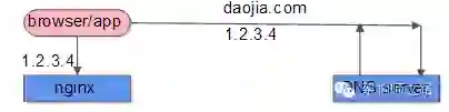 (1)端,通过DNS,由域名拿到nginx的外网IP;