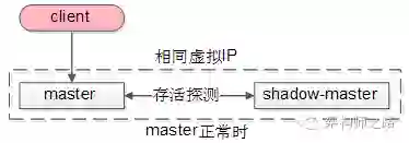 (3)异常时,虚IP漂移到另一个主库,shadow-master变成主库继续提供服务;