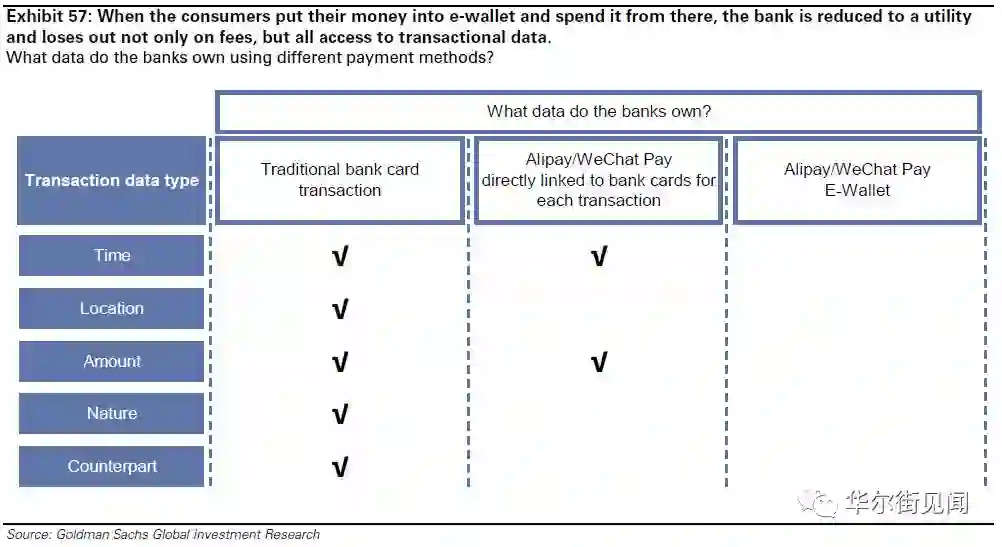 在高盛眼中,FinTech的真正“金矿”,还是在海量的用户数据上。对于阿里巴巴、腾讯、甚至中国平安这样的巨头来说,第三方支付服务只是一个获取用户数据的桥梁,手续费都是次要的。
