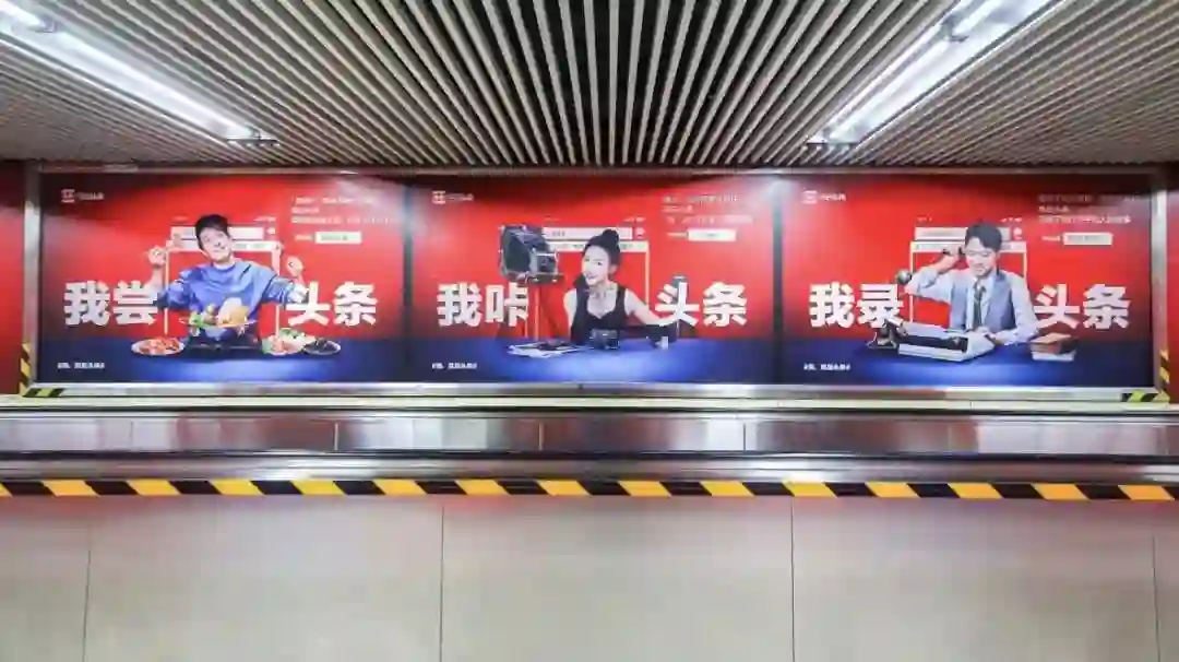上周五,头条号官方账号预告了这组海报,让用户来猜测八位“代言人”的身份。如今,“代言人”们已集体亮相北京东单地铁站,宣告自己“在头条”。