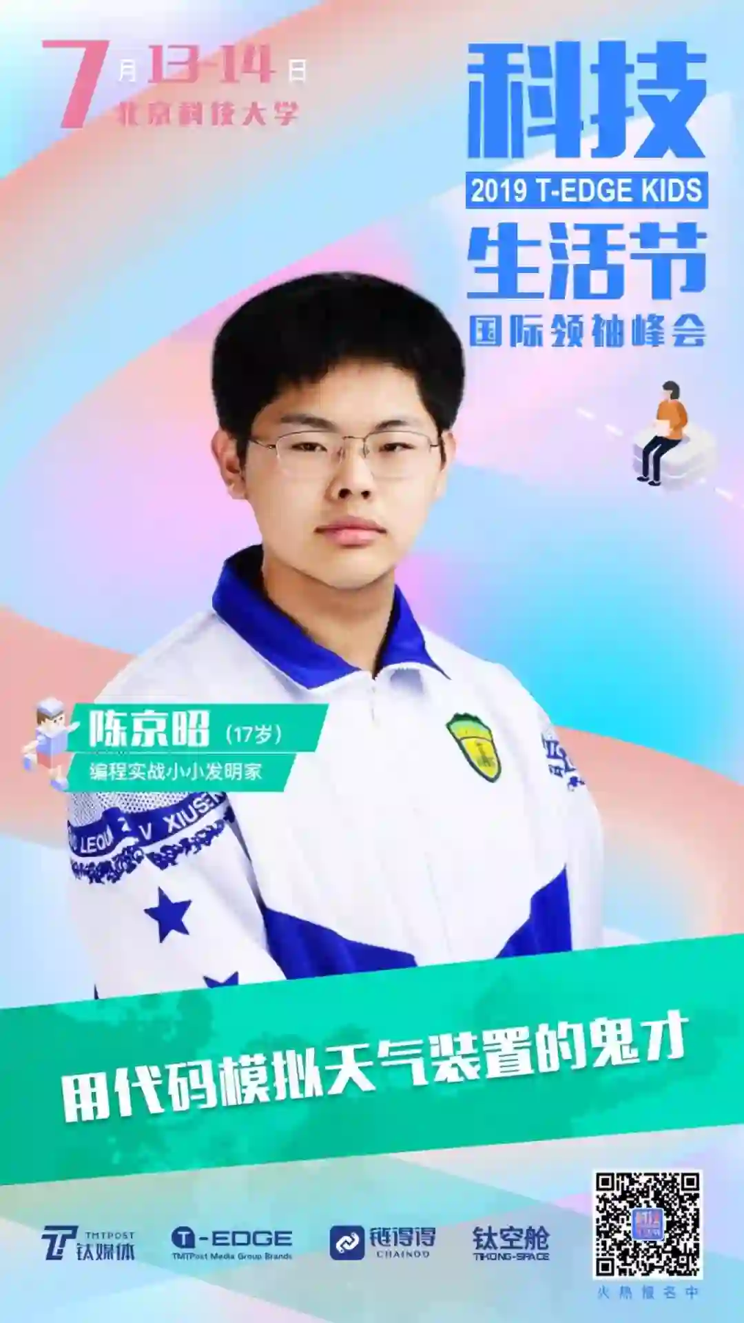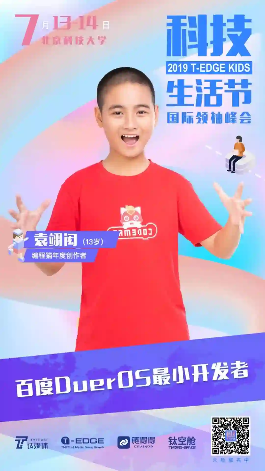 7月13日至14日,这个酷夏周末,由钛媒体主办的2019钛媒体T-EDGE科技生活节即将在北京科技大学举办,现场将请来4位小小编程天才,向观众分享自己和编程的小故事。