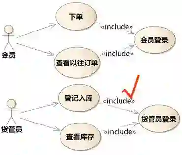这个看起来正确,实际上也是不对的。不同的涉众利益会带来不同的需求。这样做,潜意识里就有着一种追求“需求复用”的思想,会诱导需求人员对不同用例之间的微妙差别视而不见,这对于做需求来说是危险的。会员登录需要验证码,货管员登录时不需要。系统反馈给会员的是未完成的订单,反馈给货管员的则是最近货品的动态。会员登录时可能要求反馈速度很快,而且允许百万会员同时在线,货管员登录则没有那么严格。