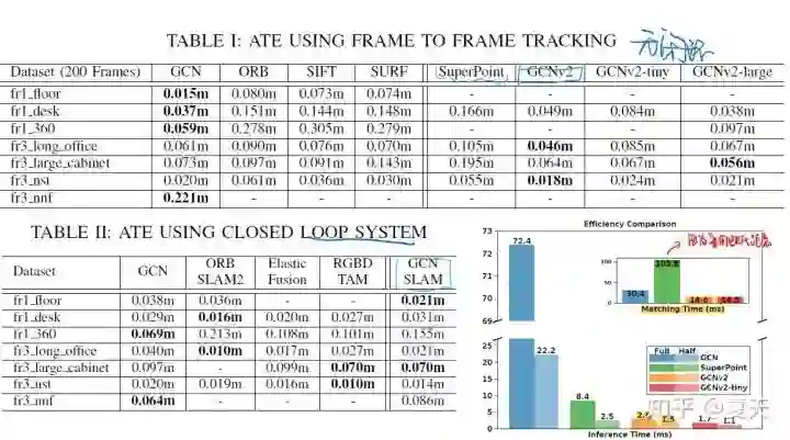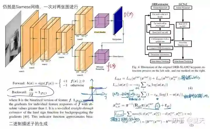 在V2版本中借鉴SuperPoint思想,简化网络结构,并构建与ORBSLAM2相同的二进制描述子来加速匹配,并结合ORBSLAM2,替换掉特征提取部分,构建了TX2上实时的GCNv2-SLAM.