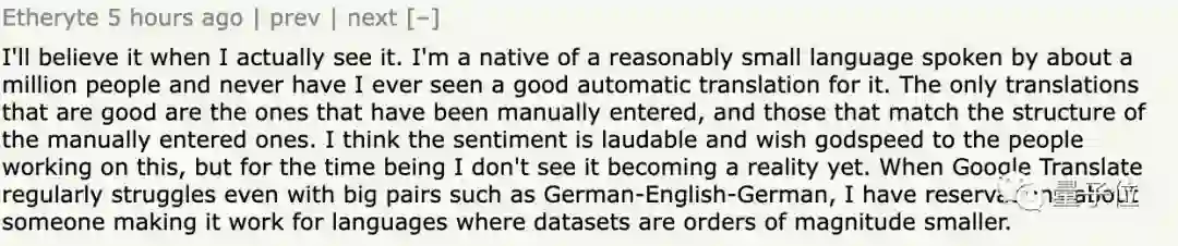 不过他认为,连著名的谷歌AI在处理“德-英-德”这样语料丰富的语言翻译时,都常常会出问题,所以他暂且对这个声称能翻译好小众语言的新模型持保留态度。