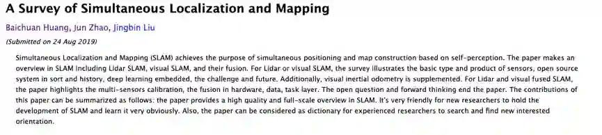 本论文主要讲述了3个大部分:激光slam,视觉slam和激光视觉等多传感器融合slam。