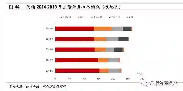 高通在2018年Q1的智能机处理器与基带芯片市场,份额分别为45%与52%,为全球第六大半导体品牌。