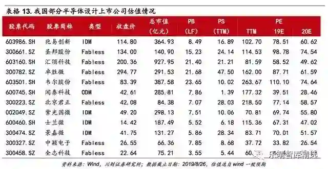 我国A股中有多家上市公司属于半导体设计类型公司,既包含Fabless模式公司,也含有大量IDM企业,如存储芯片公司兆易创新、光学指纹芯片公司汇顶科技、射频前端公司卓胜微、模拟IC公司圣邦股份、GPU设计公司景嘉微等。