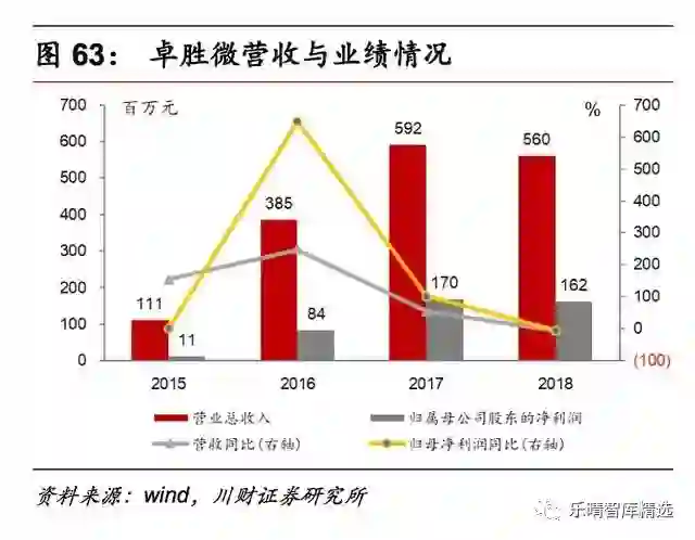 目前,公司已成为国内领先的射频器件及无线连接领域的专家,曾经推出或现有的产品线,如cmmb项目产品mxd0265、硅调谐器产品mxd1516、gps低噪放大器芯片mxdln16g及lteswitch芯片mxd8650等。2018年公司实现营业收入5.60亿元,同比下降5.32%,实现归属母公司股东的净利润1.62亿元,同比下降4.45%。