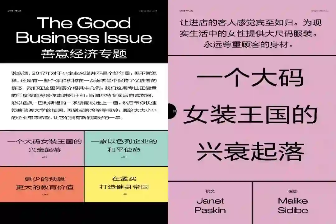 说实话,2017年对于小企业来说并不是个好年景。但不管怎样,还是有一些个体和机构在一众弱者当中保持了优胜者的姿态,我们在这里简要介绍其中几例。我们这期专注正能量的年度专题将带你走进阿什利·斯图尔特专卖店的试衣间,沿以色列-巴勒斯坦的一条装配线走上一遭。然后带你快速领略普渡大学的校园,再到宝莱坞举举哑铃。愿给大大小小的企业带来希望,让它们拥有新的美好的一年。