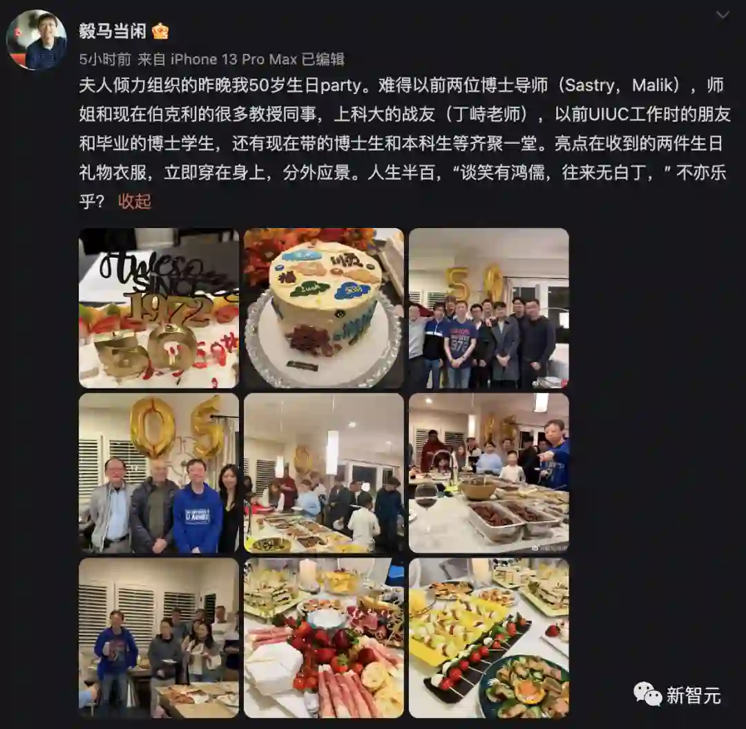 可以看到,马教授的50岁生日party,和导师、同事齐聚一堂,现场其乐融融,分外开心。