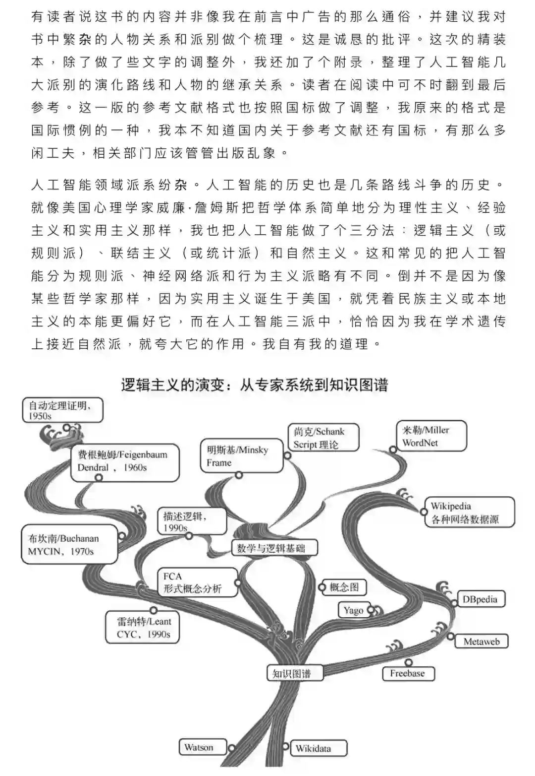 尼克在序言中说:我们很少有机会在学科发展之初就能把学科脉络梳理清楚。过去有过几个这样的时间段,例如1900年到1950年的逻辑学,1945年到2000年的分子生物学,1950年到当下的语言学。本书除了想梳理始于20世纪40年代的人工智能的历史以外,还有作者隐含的心愿:作为人工智能的科普。