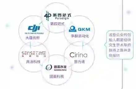 香港高校最近10多年诞生了一批在机器人、人工智能和电子信息领域的知名企业, 包括从港科大自动化技术中心走出来的固高、大疆、李群、云州和逸动科技,从港科大微电子专业出来的广东晶科电子,计算器系杨强教授和学生创办的第四范式,计算器系张黔教授创办的新元素以及中文大学汤晓鸥教授创办的商汤科技,中文大学卢煜明教授创办的思为诺等。