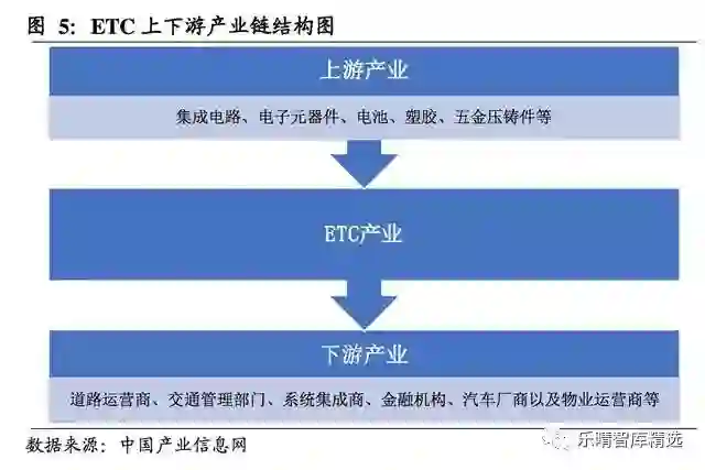 ETC的下游产业包括道路运营商、交通管理部门、系统集成商、金融机构、汽车厂商以及物业运营商。