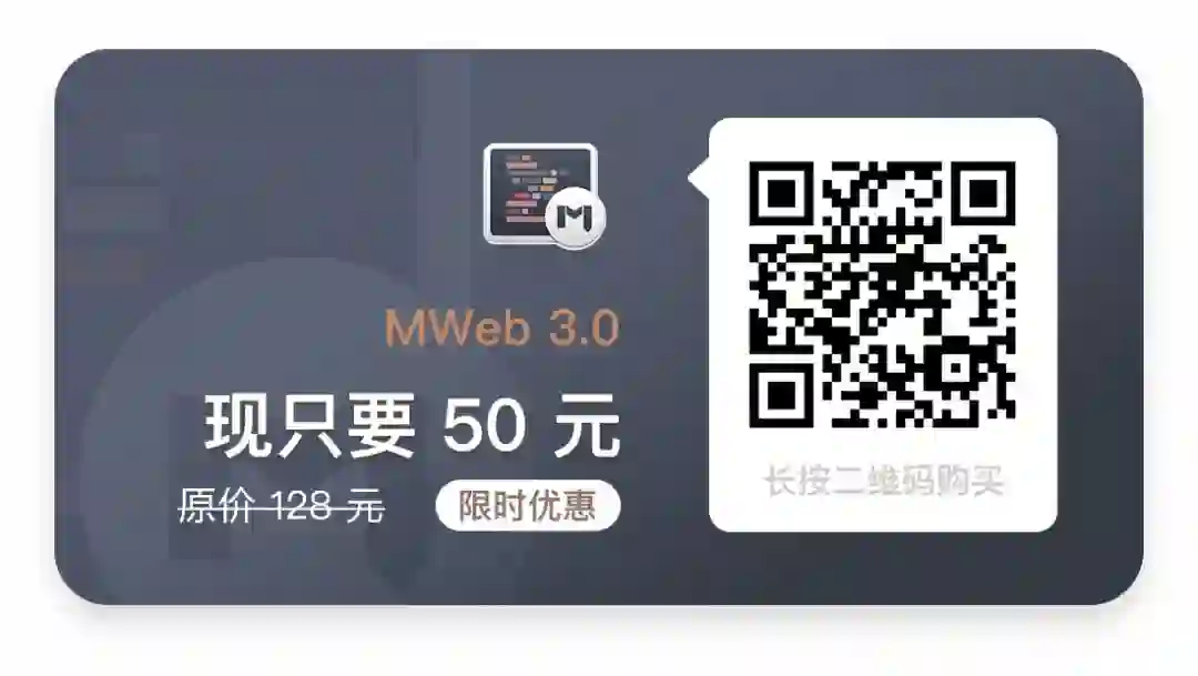 长按二维码或点「原文阅读」以优惠价购买 MWeb3.0。