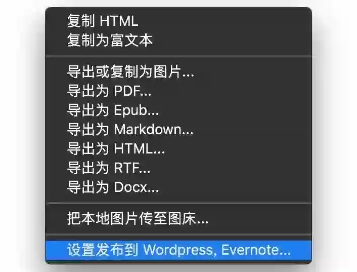 可以直接发布文章到 WordPress、Medium、新浪博客等平台;