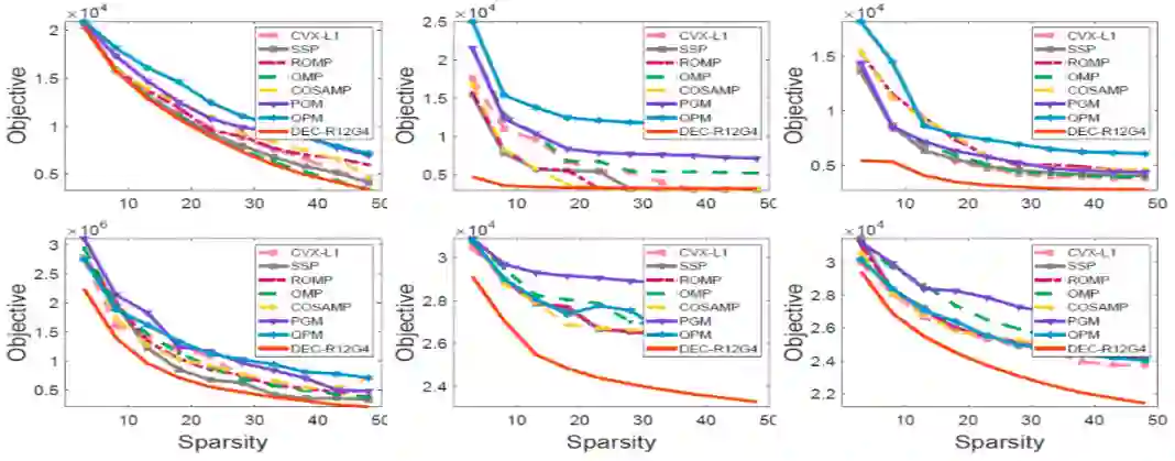6.1 对于稀疏约束优化问题,我们比较了以下9种方法: