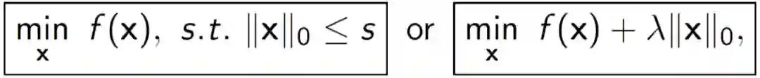 本文主要讨论求解以下稀疏约束或稀疏正则优化问题: