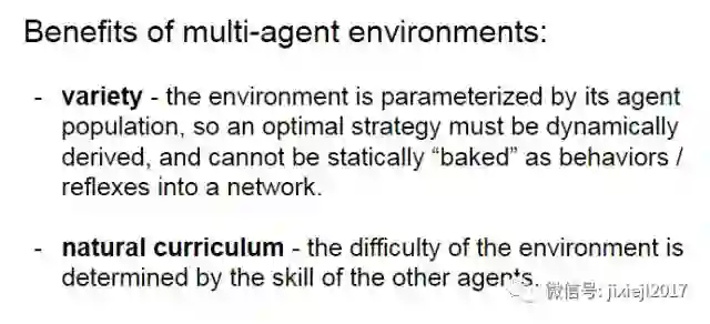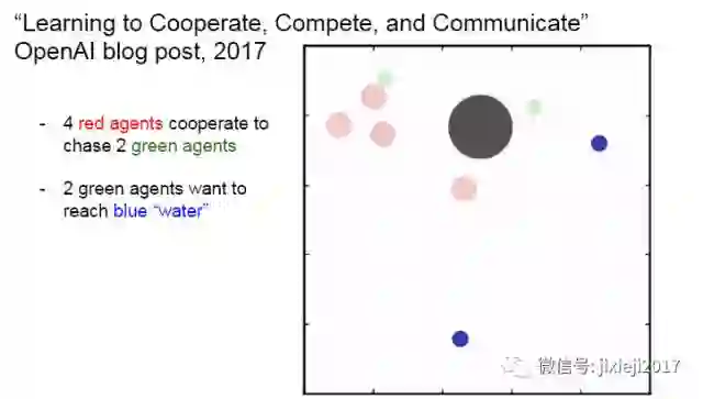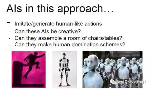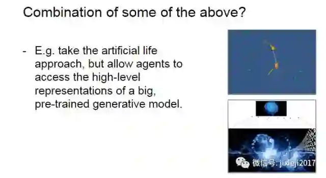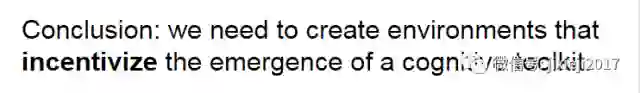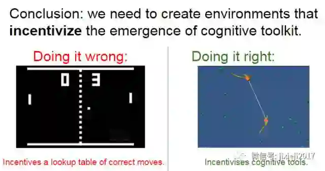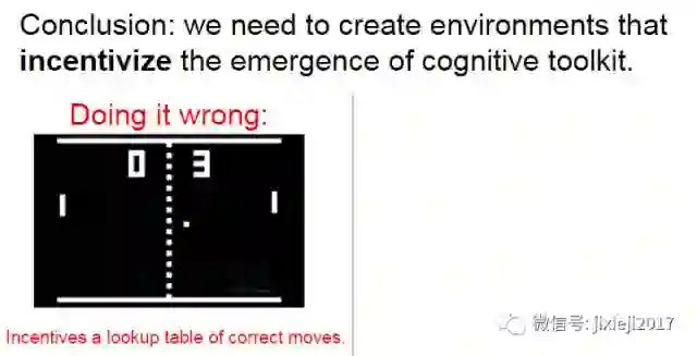 和 DeepMind 不一样,Facebook 的研究团队是在开发智能机器的更广阔的语境中明确讨论他们的成果 [36]。他们的主要观点是:人工智能是在太复杂了,以至于不能一次性开发出来,而是应该首先定义智能的通用特征。他们已经定义出了两个智能的通用特征:交流(communication)和学习(learning),并且还提出了一个逐渐发展它们的具体的路线图。这个方向的第一步是人工生态系统(artificial ecosystem,或称「幼儿园」),其被提出用于教育智能代理(intelligent agent),从而强调了这个过程的发展性本质。他们的计划是从更简单的模拟环境开始,然后逐渐增加其复杂度,直到最后它能够将人工代理和真实世界连接起来。鉴于这种对交流和学习的强调,这种智能机器的一种主要应用就是电子助理。作者承认类似的想法在过去已经得到过尝试(如,常被符号架构用于学习的 Blocks World 模拟),但它们都过于依赖于其创造者所提供的数据。