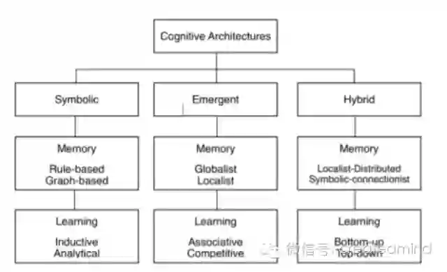 有趣的是,层创式架构只在最近时期才获得更多的比重,尽管这一方向的研究至少与传统人工智能一样活跃。例如 Langley 等人 [22] 在他们的调查中没有加入联结主义模型,因为他们没有发现这一架构与符号模型和混合模型相同的功能。
