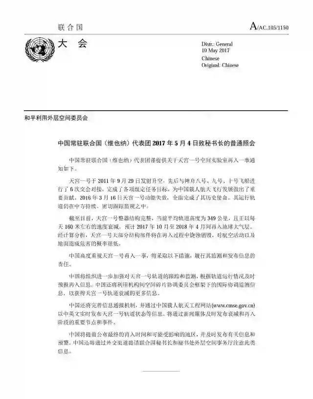 中国驻联合国(维也纳)代表团2017年5约4日致秘书长的普通照会