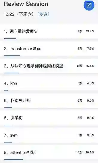 每周一次的Review Session, 老师提前一周给出几个备选主题,由学生进行投票选择最心仪的主题,每周三次。