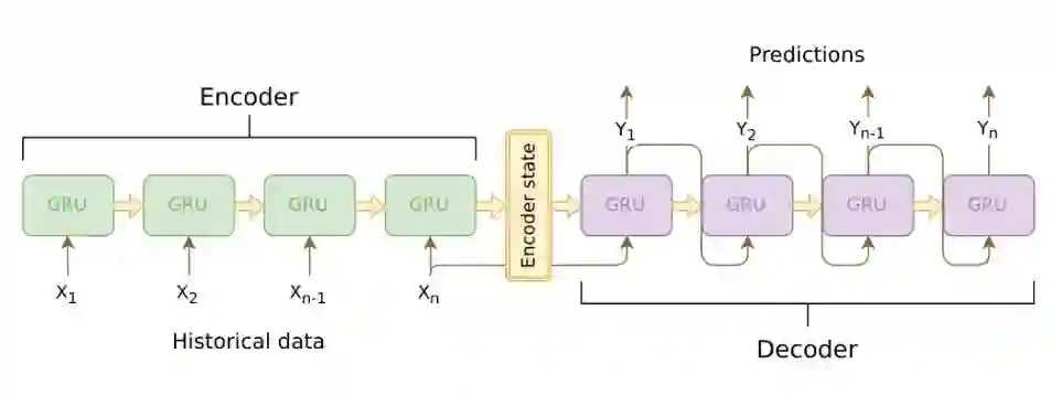 seq2seq 天然适合该任务:我们根据先前值(包括先前预测)的联合概率(joint probability)预测下一个值。使用先前预测可保持模型稳定,因为误差会在每一步累积,如果某一步出现极端预测,则有可能毁了所有后续步的预测质量。