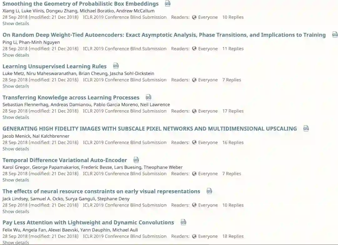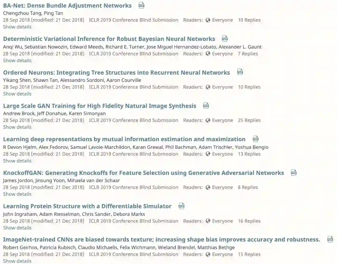 接收论文地址:https://openreview.net/group?id=ICLR.cc/2019/Conference