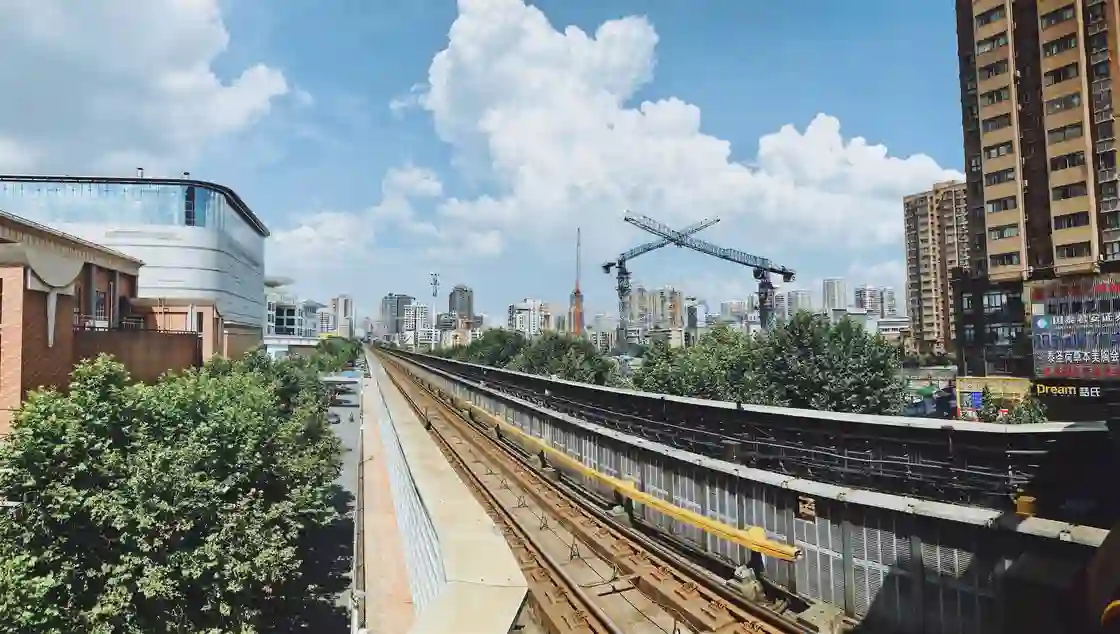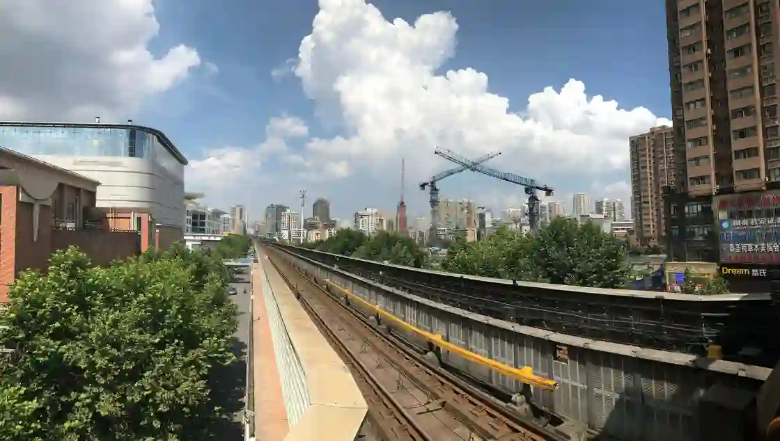 前者是电影《你的名字。》的截图,后者是我在武汉拍摄的轻轨站。